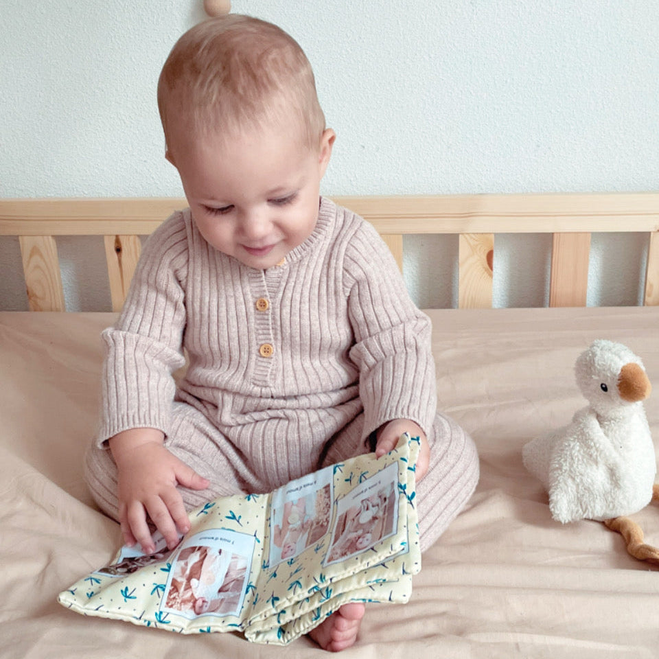Enfin, avec sa taille adaptée aux mains des enfants, bébé peut feuilleter des heures son album photo en tissu en toute sécurité, où qu’il soit.